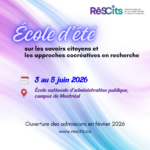 • École d’été sur les savoirs citoyens et approches cocréatives en recherche